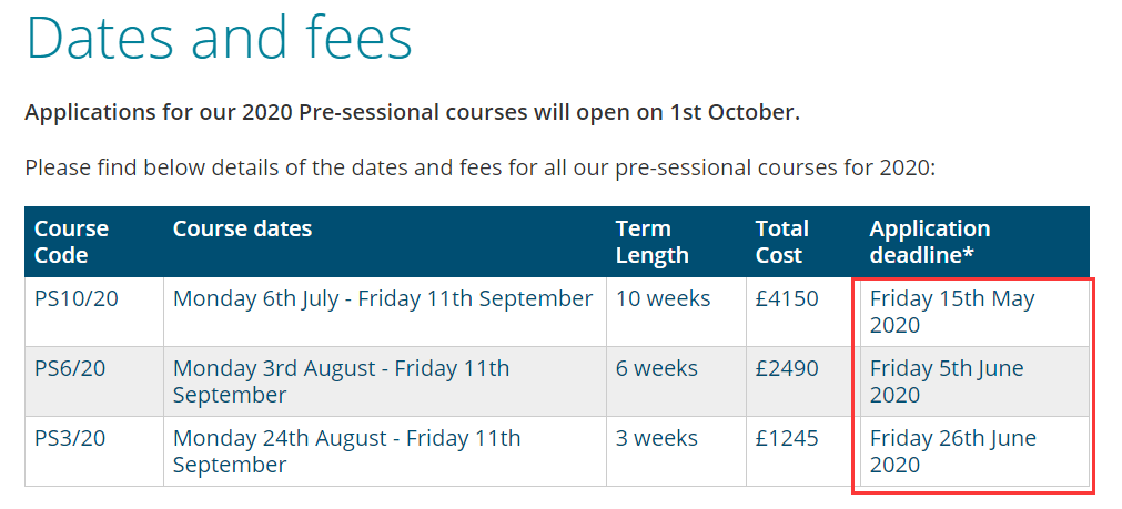 申请截止日期:12周截止日期为5月4日;10周截止日期为5月25日;6周截止日期为6月22日。