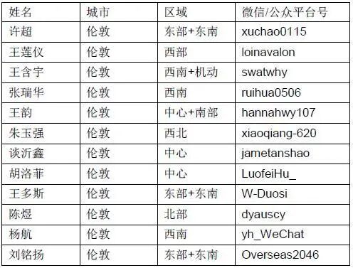 附:“守望互助”微信群区域负责人名单