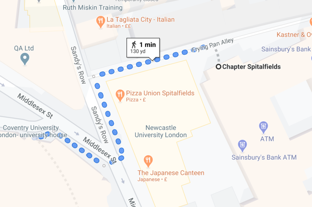 地理位置:Chapter Spitalfields, 9 Frying Pan Alley, Spitalfields, London E1 7HS