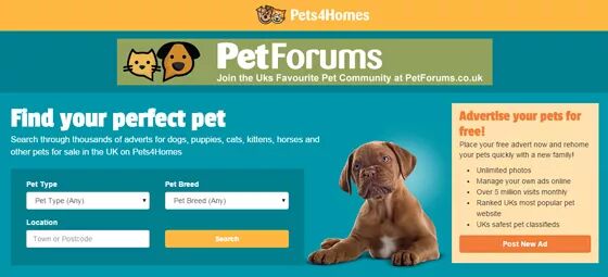最有名的网站叫做pets4homes,这个网站是专门给卖宠物的人登广告的,不仅仅是猫狗,其它宠物也都有卖。