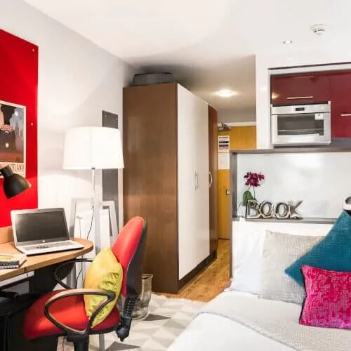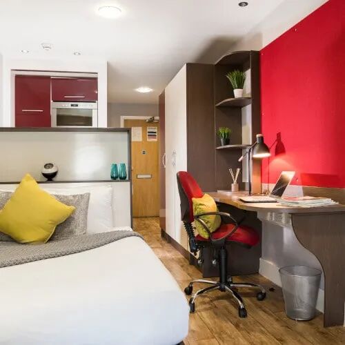 Dashwood Studios拥有多种单间套房可供选择,满足学生的不同需求和预算。每间套房均带有独立卫浴、厨房区和宽敞的衣橱。我们为学生提供私人空间的同时,也准备了丰富的活动,你将会有许多机会见到邻居或者认识新朋友。此外,公寓配有现代化的游戏室和可以欣赏城市美景的屋顶露台,每层楼都带有自习室,还有洗衣设施、自行车车库和24小时安保等,为学生打造安全放心的居住环境。