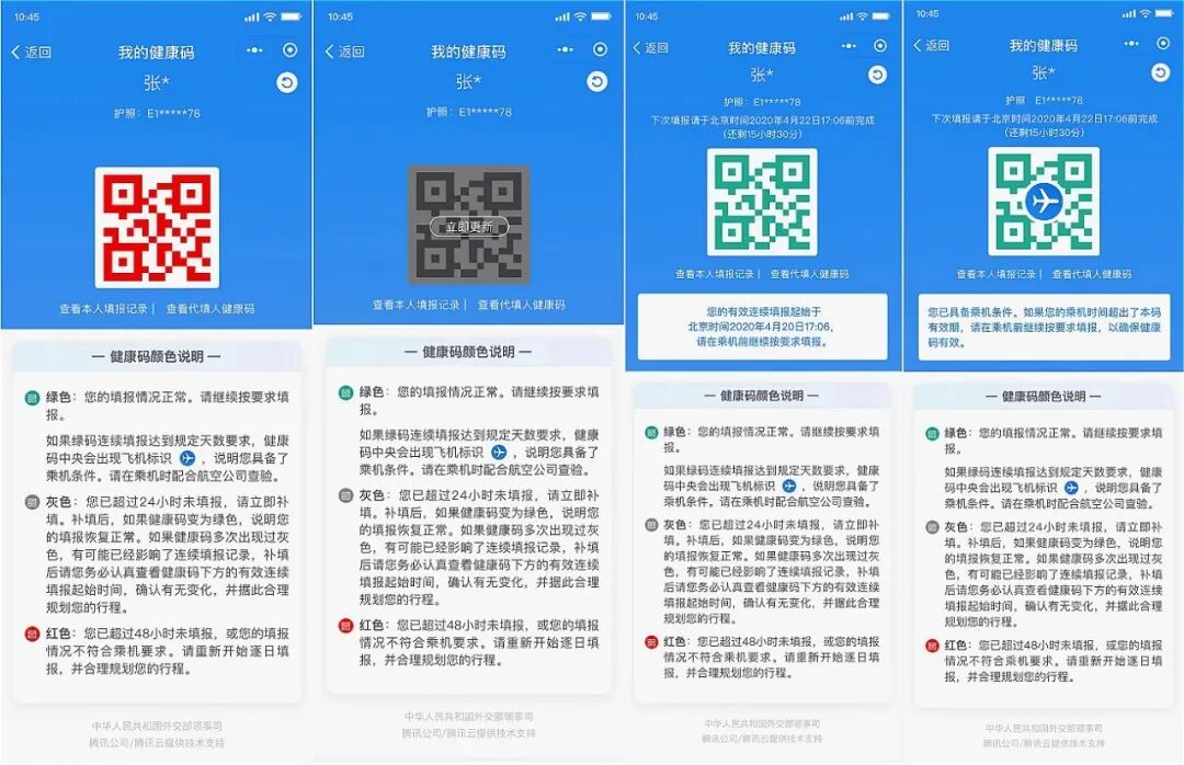 当前新冠肺炎疫情全球蔓延的情况下,海外中国公民要充分评估国际旅行可能带来的交叉感染风险,非必要不旅行。近期确需从有关国家回国的海外中国公民应严格按照中国政府有关公告要求,通过健康码国际版小程序如实填报个人信息。请大家密切留意每次填报后的健康码状态(包括相应颜色、有效连续填报起始时间及是否出现飞机标识等),如需重新规划行程,请尽快联系航空公司办理退票和改签手续。