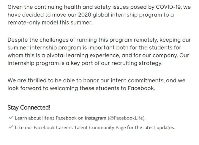 Facebook公司COO雪莉·桑德伯格(Sheryl Sandberg)接受采访时表示,公司承诺疫情期间不会裁员,并且还将在今年内,再为其产品和工程团队招聘一万名员工!