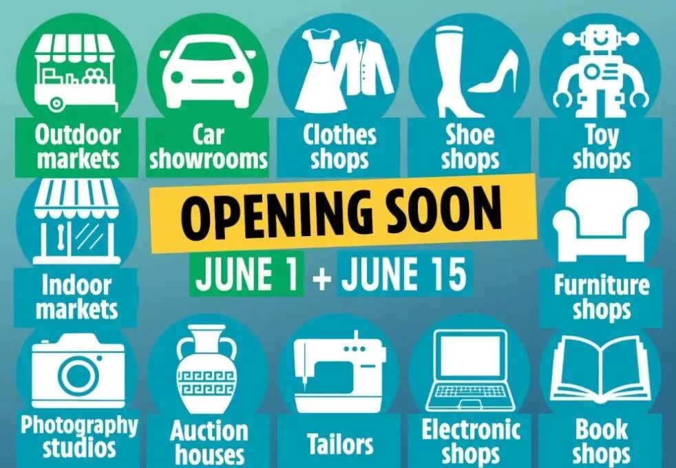 收藏好消息,首相鲍里斯5月26日宣布6月重开各大商店!