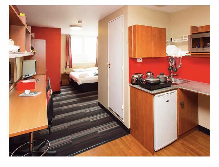 7. 套内20平米,带独立卫浴,厨房,电视,空气净化器,双头淋浴。配套冰箱,烤箱,烧水壶,面包机,台灯,展板,餐具等配套设施。