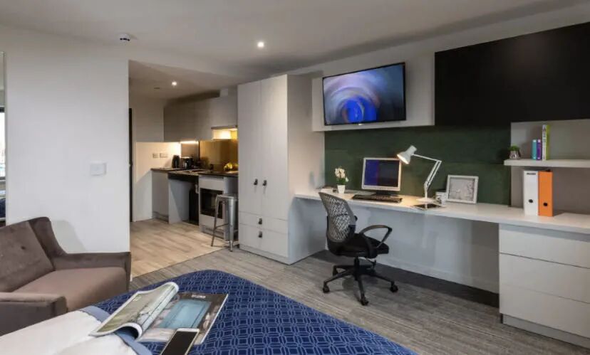 走路2分钟到英超,走路5分钟到中超辣妹子,走路15min到曼彻斯特大学南北校区,走路5分钟到曼彻斯特度都会大学。走路15分钟到中国城/市中心。旁边有公交站,免费的147。然后公寓自带健身房和学习室和休闲区域。