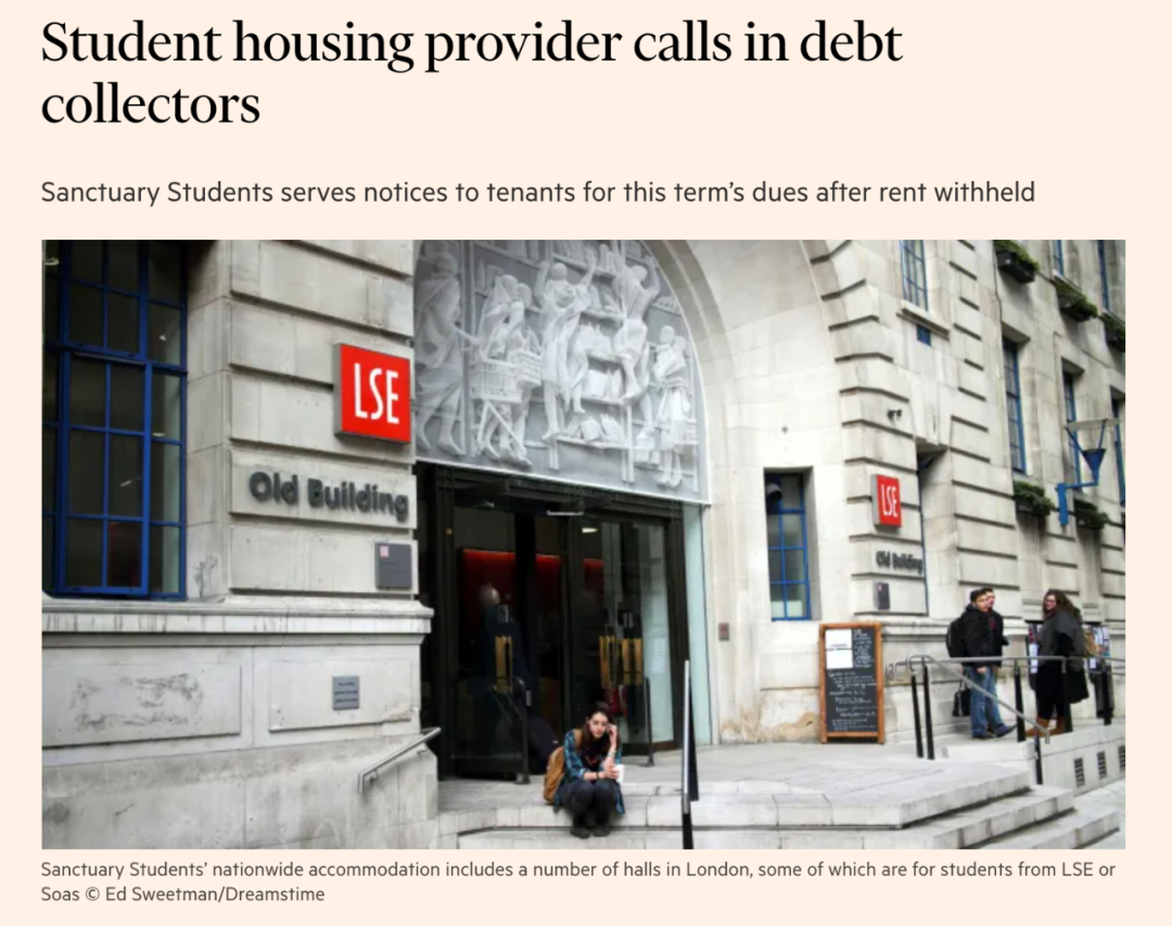 收藏据FT报道,Sanctuary Students 学生公寓主要包含了LSE 与 SOAS 的学生,他们在疫情期间联合催债公司(合法)去找学生收取房租,并且强迫大学关闭公寓。