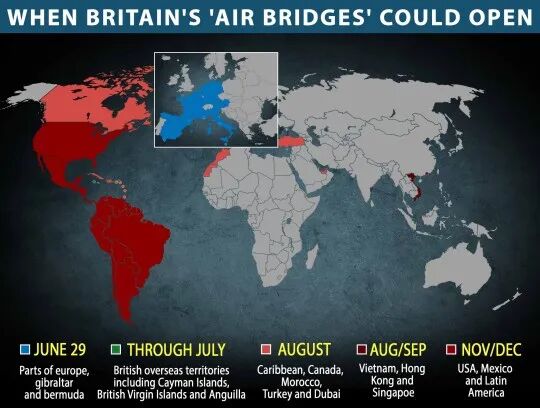 6月25日 英国开放的Air Bridge 时间与国家安排