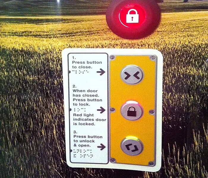 (英国的火车很多厕所是自动锁门的,很多人都不会用,导致尴尬局面,一般是进去厕所后,按第一个按钮,然后锁门是第二个按钮,变成红色才说明厕所已经锁好了,如果是绿色,外面的人是可以打开你的门哦)