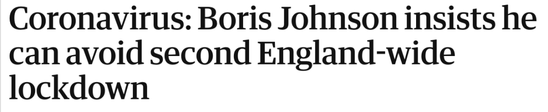 (新闻源:https://www.theguardian.com/uk-news/2020/jul/19/coronavirus-boris-johnson-insists-he-can-avoid-second-england-wide-lockdown)