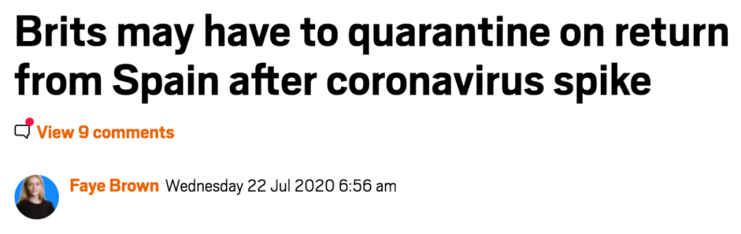- 西班牙游客暴增,同时也引发了感染人数上升,可能从西班牙回英国需要再次被要求自我隔离