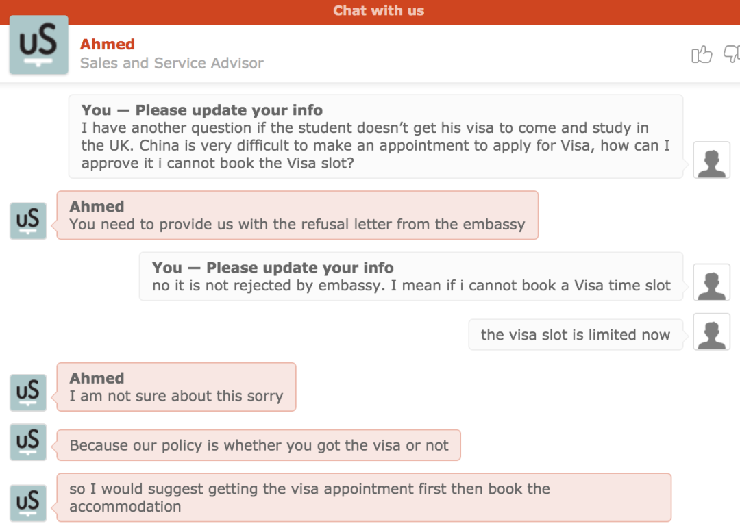 - No Place No Pay: if the student fails their exams or is rejected by the UK University, the student needs to send us the university rejection letter, or proof that the exam results don’t meet the requirements of the university, and we will cancel the booking and refund the money to the student. The student must send us the proof documents within 7 days of receiving them. This policy is valid until the 15th September.
