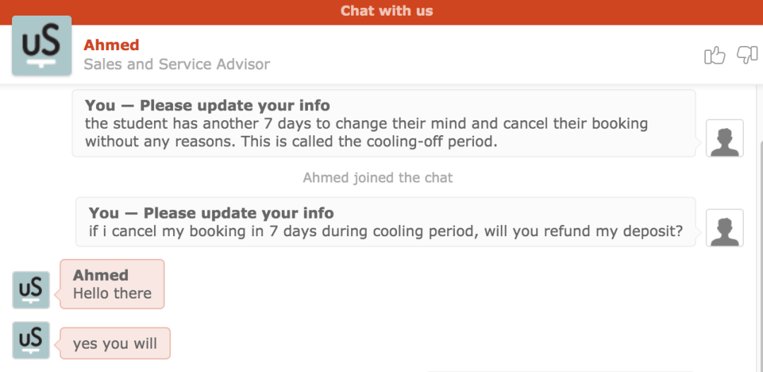 Once the booking is completed, the student has another 7 days to change their mind and cancel their booking without any reasons. This is called the cooling-off period.