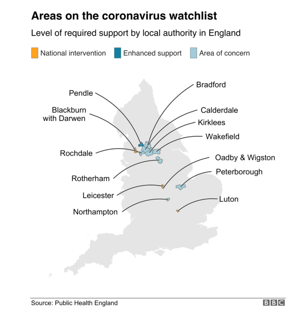 英国政府重点关注疫情爆发潜在城市,莱斯特依旧榜上有名