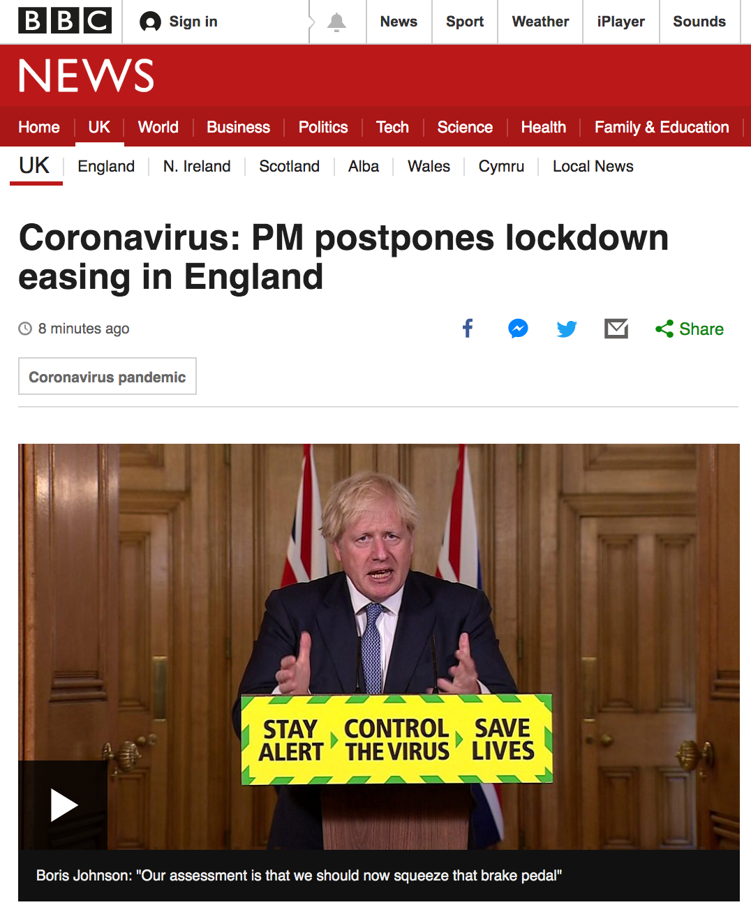 英国进一步的解封将延期2周,因为英国政府担心2次爆发疫情