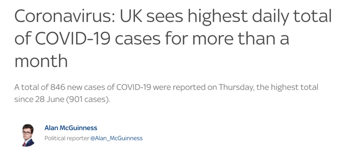 (新闻源:https://news.sky.com/story/coronavirus-uk-sees-highest-daily-total-of-covid-19-cases-for-more-than-a-month-12039408)