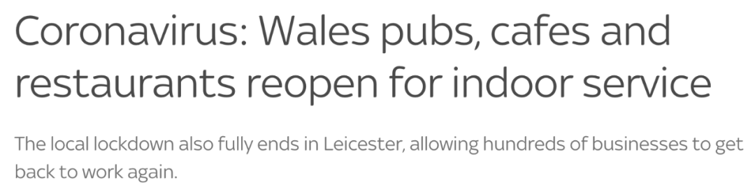 (新闻源:https://news.sky.com/story/coronavirus-wales-pubs-cafes-and-restaurants-reopen-for-indoor-service-12041335)