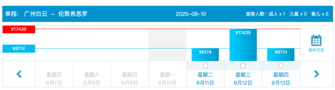 北京 ✈️ 伦敦 目前最早的航班是8月10日,每周都是固定的周1/2/3有票。但是都是从广州飞,所以最终起飞路线是:周一(荷兰转机)、周二广州直飞、周三(荷兰转机)。