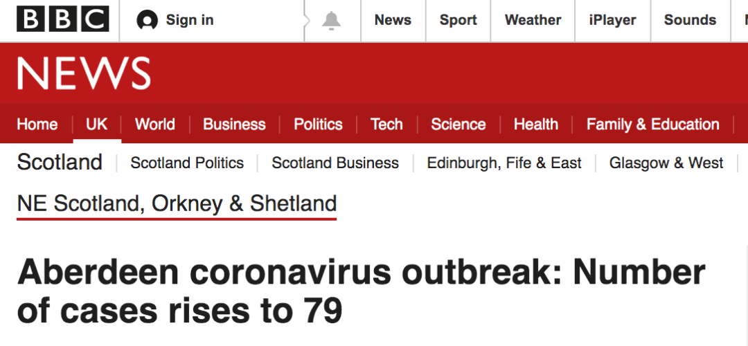 昨日已经宣布阿伯丁再次封城,今日感染人数上升至79