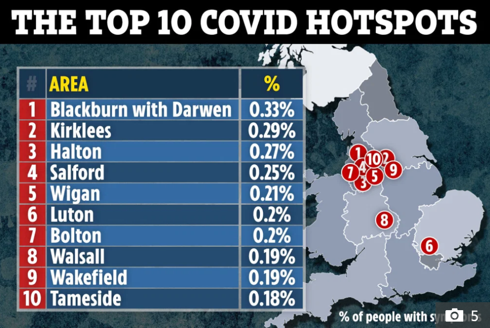 最新的疫情城市索尔福德榜上有名,此城市紧邻曼城,附近的同学要多多小心