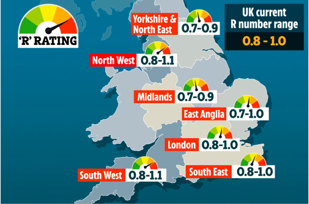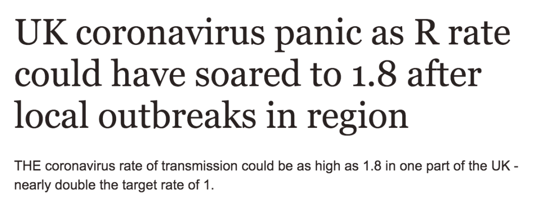 英国部分区域的R值再次突破1高达1.8,这意味着疫情在某些区域再次反弹