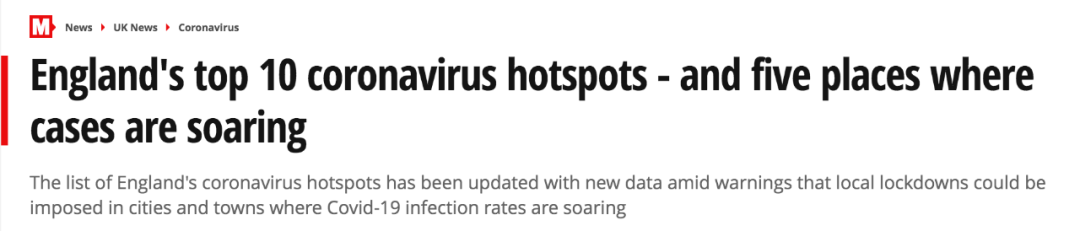 (新闻源:https://www.mirror.co.uk/news/uk-news/englands-top-10-coronavirus-hotspots-22483516)