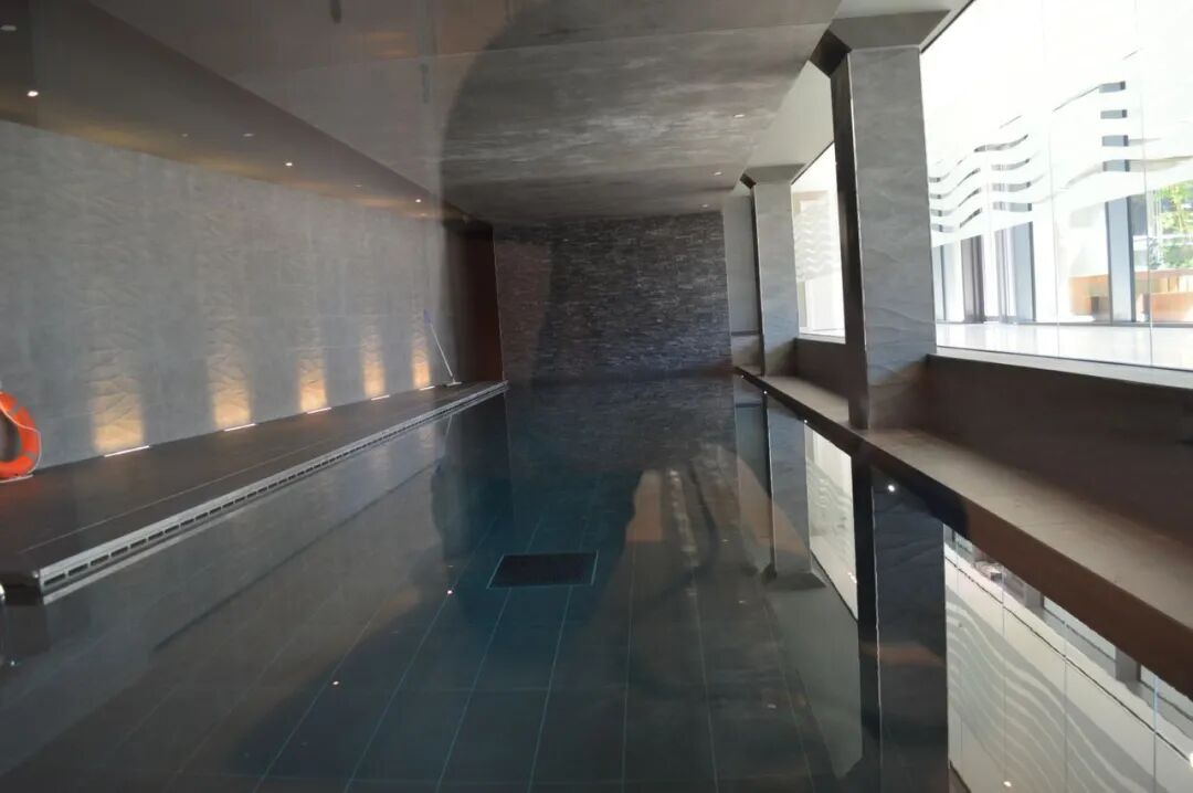 公共区间包括帅气双开门的电梯,有小瀑布的小花园,超大size的gym与室内游泳池。