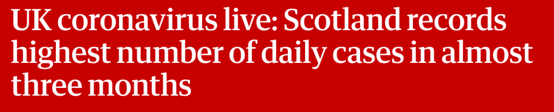 苏格兰今日达到3个月的最高感染数值,77人确诊