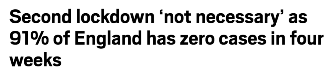 第二波封城没有必要,因为91%的英格兰城市在4周内都有过0感染