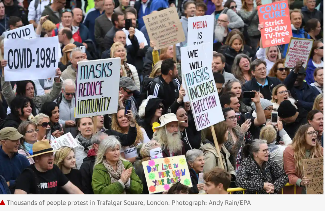 - 又有上1000人聚集在伦敦特拉法加广场进行反口罩游行!