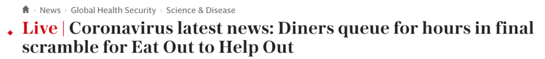 - Eat out to help out 即将结束,排数小时队吃饭,就为了最后的10镑福利