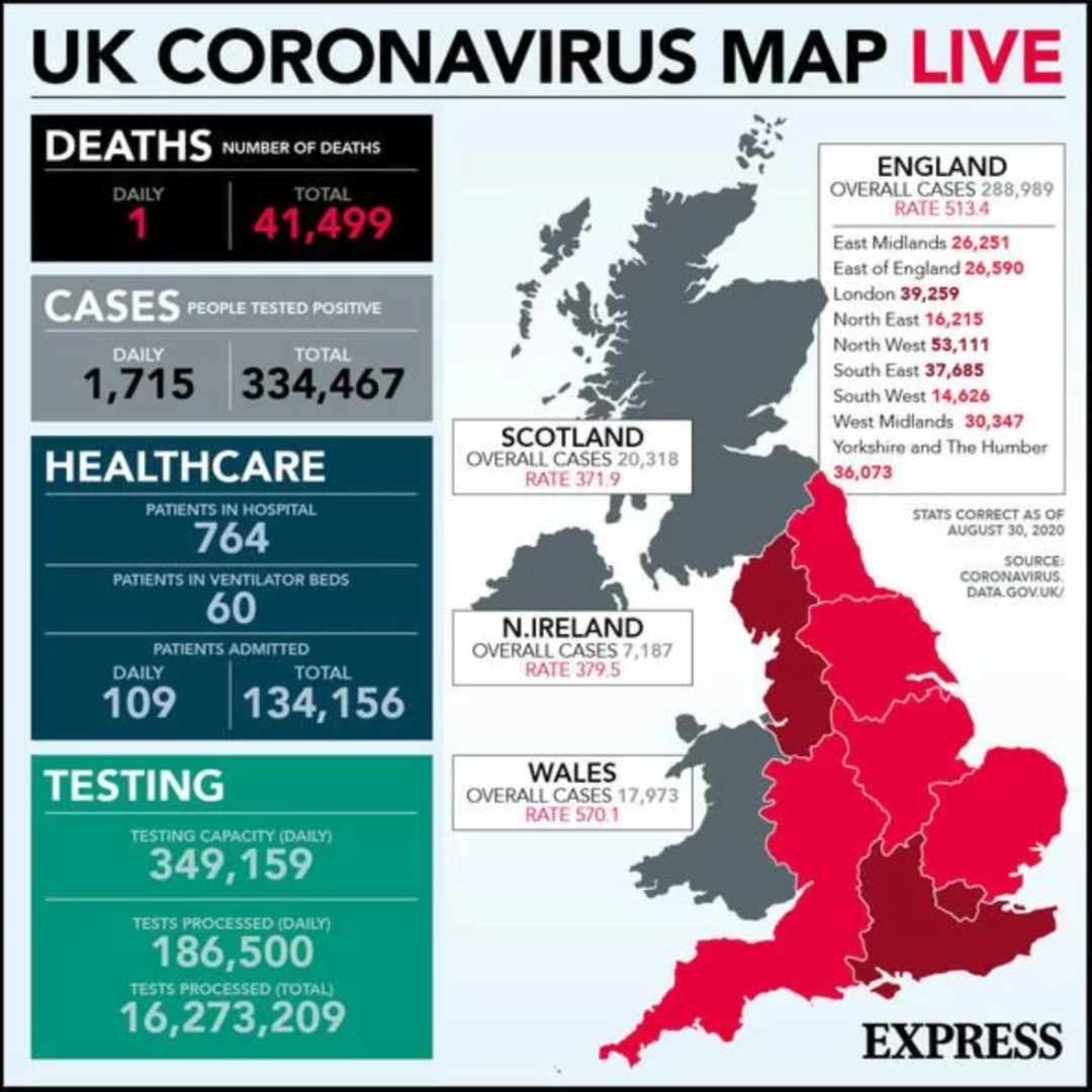 8月31日 | 昨日死亡1人确诊1715人,政府吃饭补贴10镑福利即将结束!英国留学生要了解的疫情信息(日报)