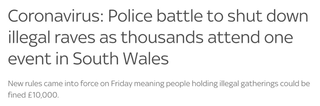 (新闻源:https://news.sky.com/story/coronavirus-police-battle-to-shut-down-illegal-raves-as-thousands-attend-one-event-in-south-wales-12059520)