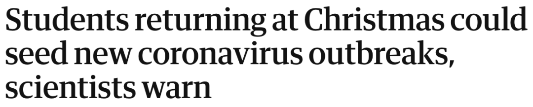 (新闻源:https://www.theguardian.com/education/2020/sep/05/students-returning-at-christmas-could-seed-new-coronavirus-outbreaks-scientists-warn)