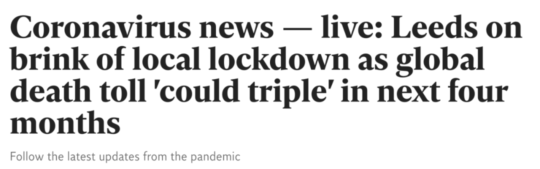 (新闻源:https://www.independent.co.uk/news/health/coronavirus-news-live-uk-update-today-leeds-local-lockdown-deaths-a9706366.html)