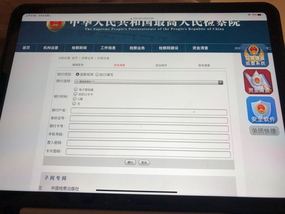 然后他们会让你点击右边的犯罪通缉,你输入案件编码和身份证之后,就会出现一份像模像样的通缉令,警官还让我把通缉令逐字逐句的念出来(我当时到这里就开始哭了,脑子就更不清醒了)接下来骗子警察就慢慢引导你说你要证明你的清白我们就要清查你的资金周转!看你是不是有违法的记录。