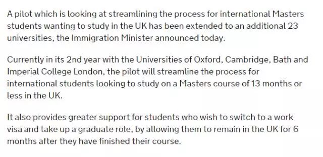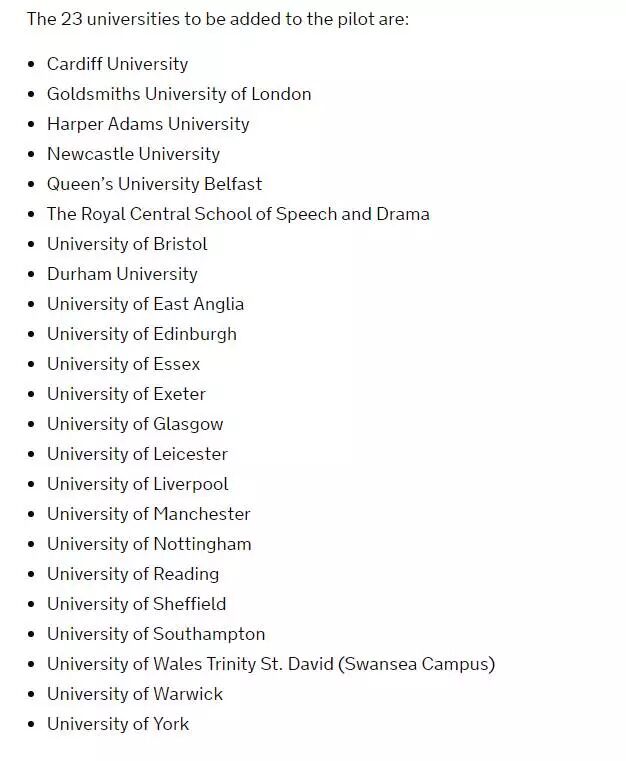 原文消息来自:https://www.gov.uk/government/news/twenty-three-universities-join-student-visa-pilot