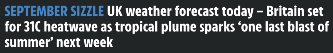 (新闻源:https://www.thesun.co.uk/news/12650204/uk-weather-31c-heatwave-tropical-plume-summer/)