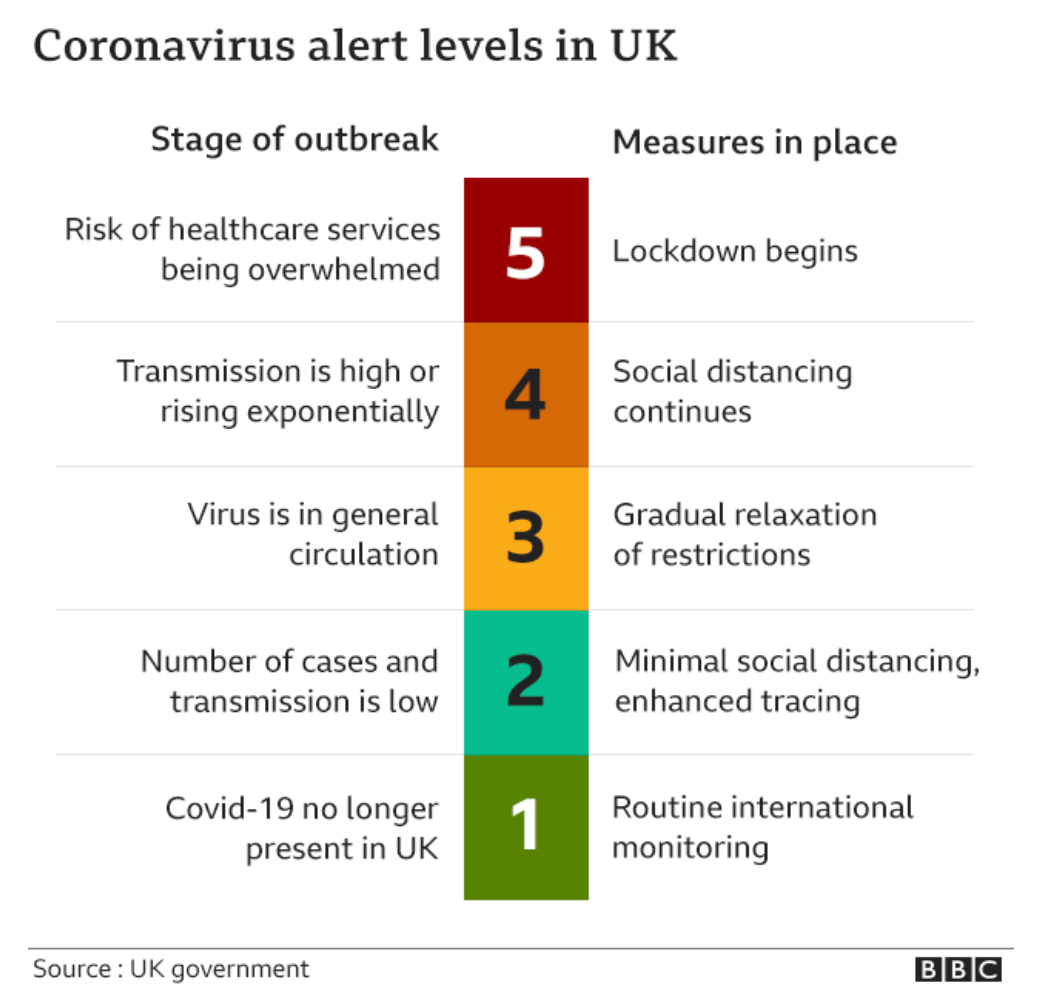 英国冠状病毒警报级别从3移至4,意味着病毒在迅速的扩散!