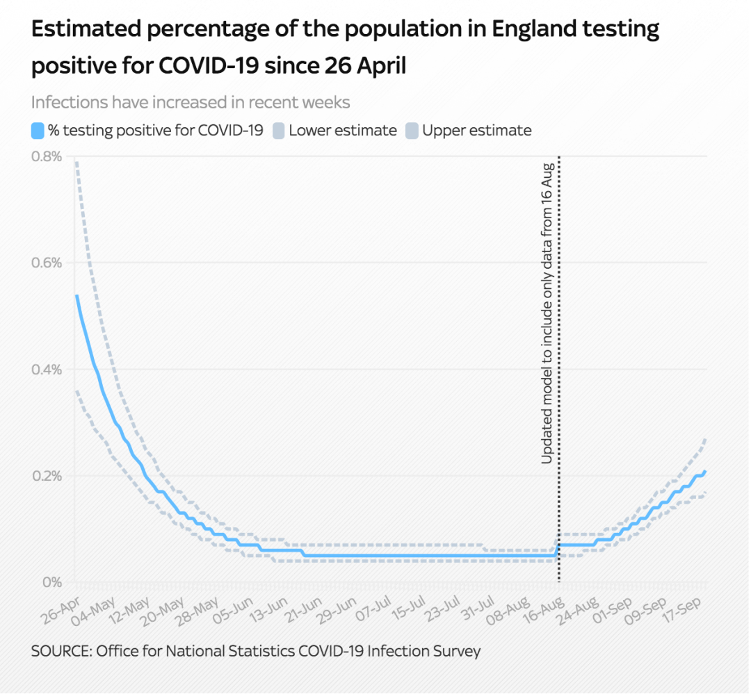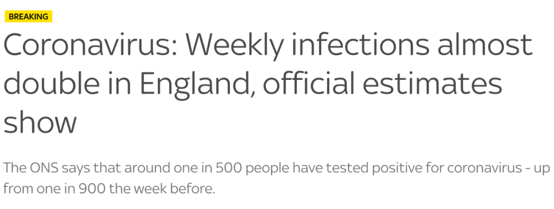 (新闻源:https://news.sky.com/story/coronavirus-weekly-infections-almost-double-in-england-official-figures-show-12081124)