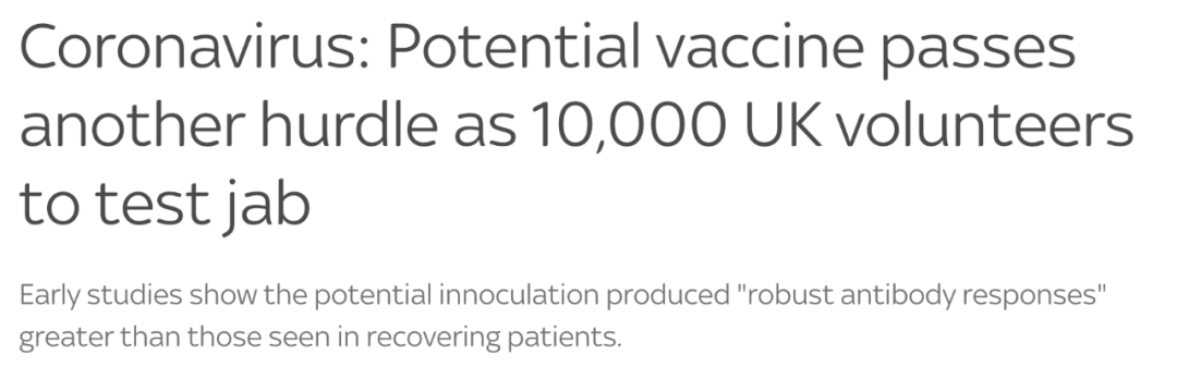 (新闻源:https://news.sky.com/story/coronavirus-second-covid-19-vaccine-to-begin-advanced-clinical-trials-in-the-uk-12080796)