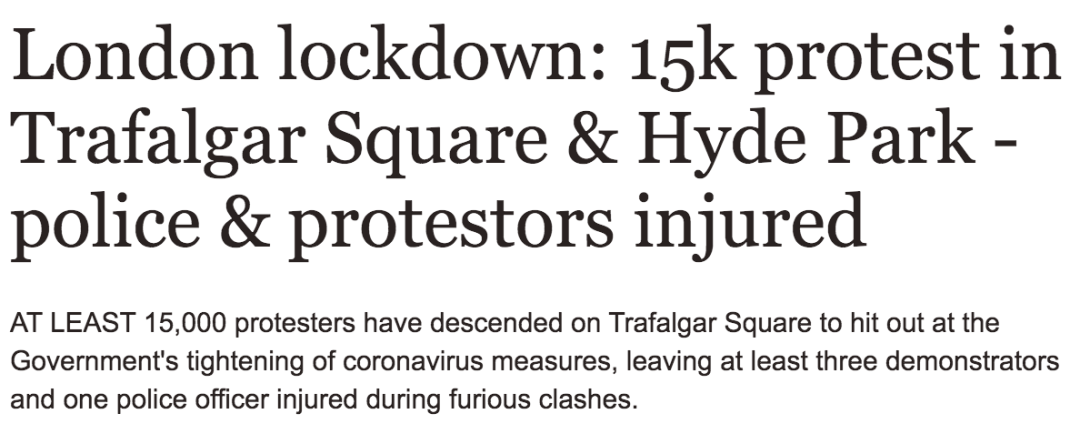 (新闻源:https://www.express.co.uk/news/uk/1340283/london-news-trafalgar-square-protest-lockdown-coronavirus-restrictions-david-icke)