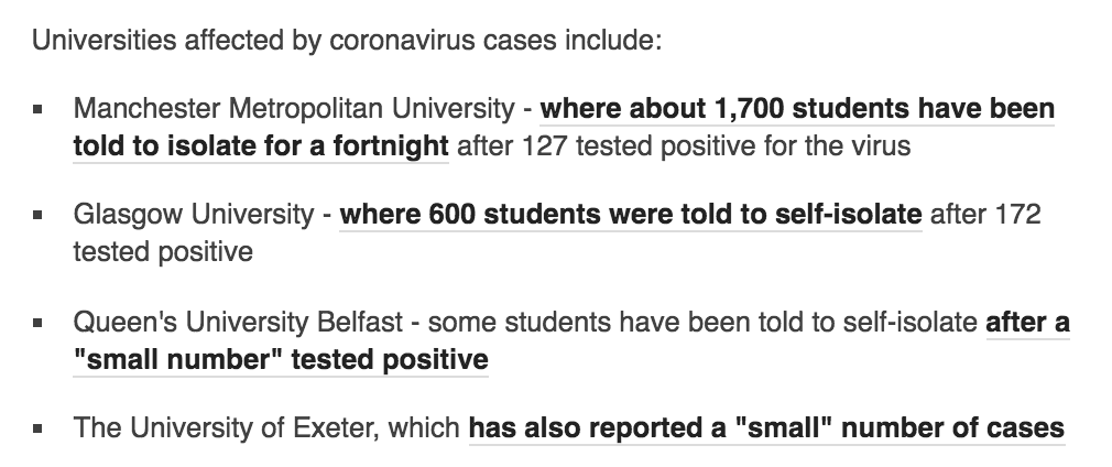 曼彻斯特城市大学 - 1700学生被要求自我隔离,127人确诊