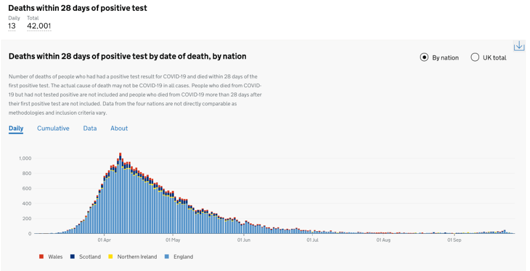 *新的计算方式New rules mean deaths anywhere in the UK are included in the coronavirus total only if they occurred within 28 days of a positive test