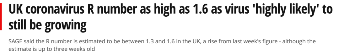 (新闻源:https://news.sky.com/story/coronavirus-r-number-increases-to-between-1-3-and-1-6-12087789)