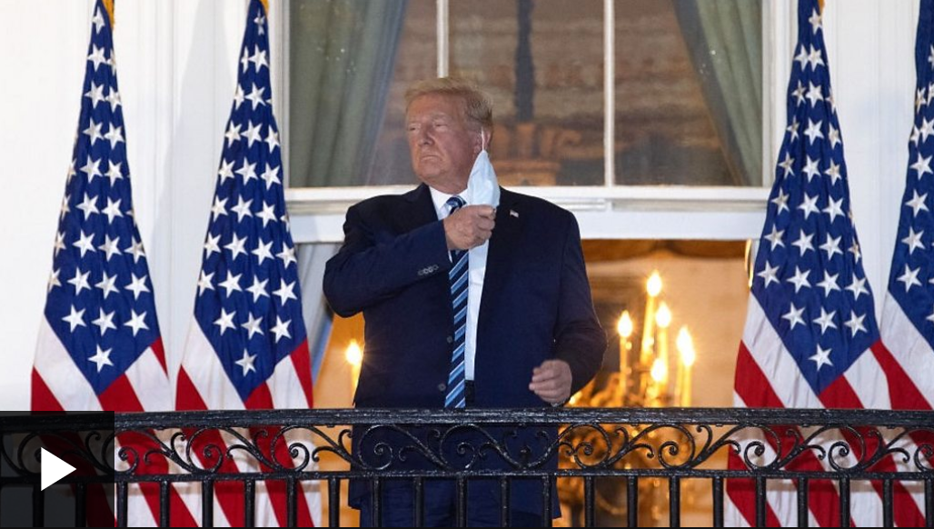 特朗普总统出院,但是他对病毒的非常的轻描淡写,在感染期取下口罩拍照