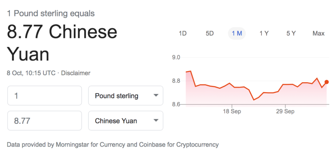 今日英镑兑人民币汇率:1:8.77