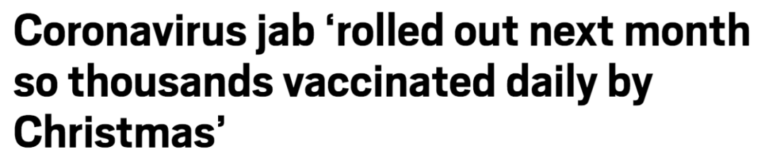 (新闻源:https://metro.co.uk/2020/10/08/coronavirus-jab-rolled-out-next-month-so-thousands-vaccinated-daily-by-christmas-13389019/)