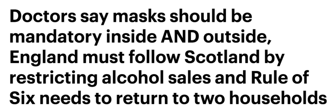 (新闻源:https://www.dailymail.co.uk/news/article-8825843/Coronavirus-UK-Doctors-say-masks-mandatory-inside-outside.html)