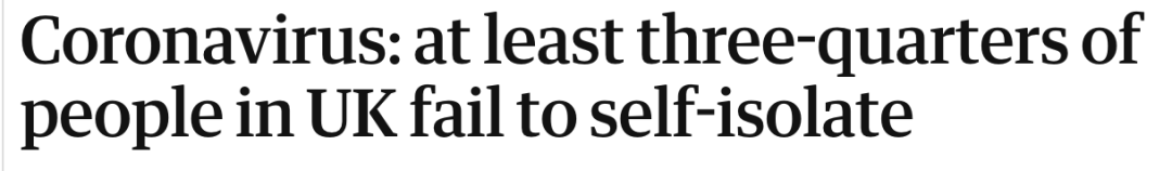 目前英国有75%的人并没有遵守要求自我隔离,这些人也有可能感染他人的风险